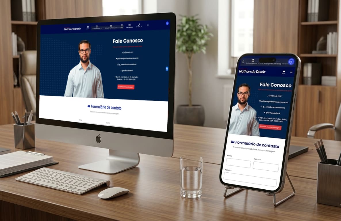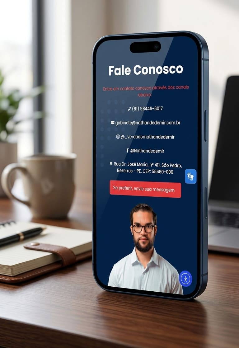 Desenvolvimento de website institucional para o vereador Nathan de Demir, com foco em estruturar uma presença digital organizada e ampliar o canal de comunicação com a população de Bezerros – PE.