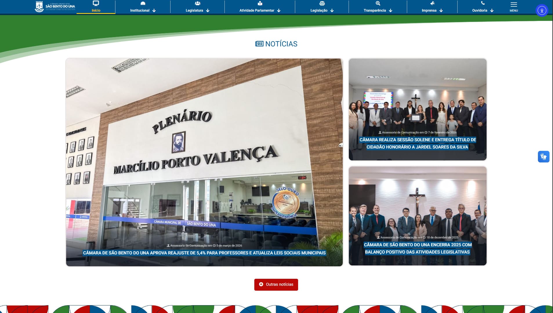 Desenvolvimento de portal institucional para a Câmara Municipal de São Bento do Una – PE, com foco em organizar a comunicação legislativa e ampliar o acesso da população às informações públicas do poder legislativo municipal.
